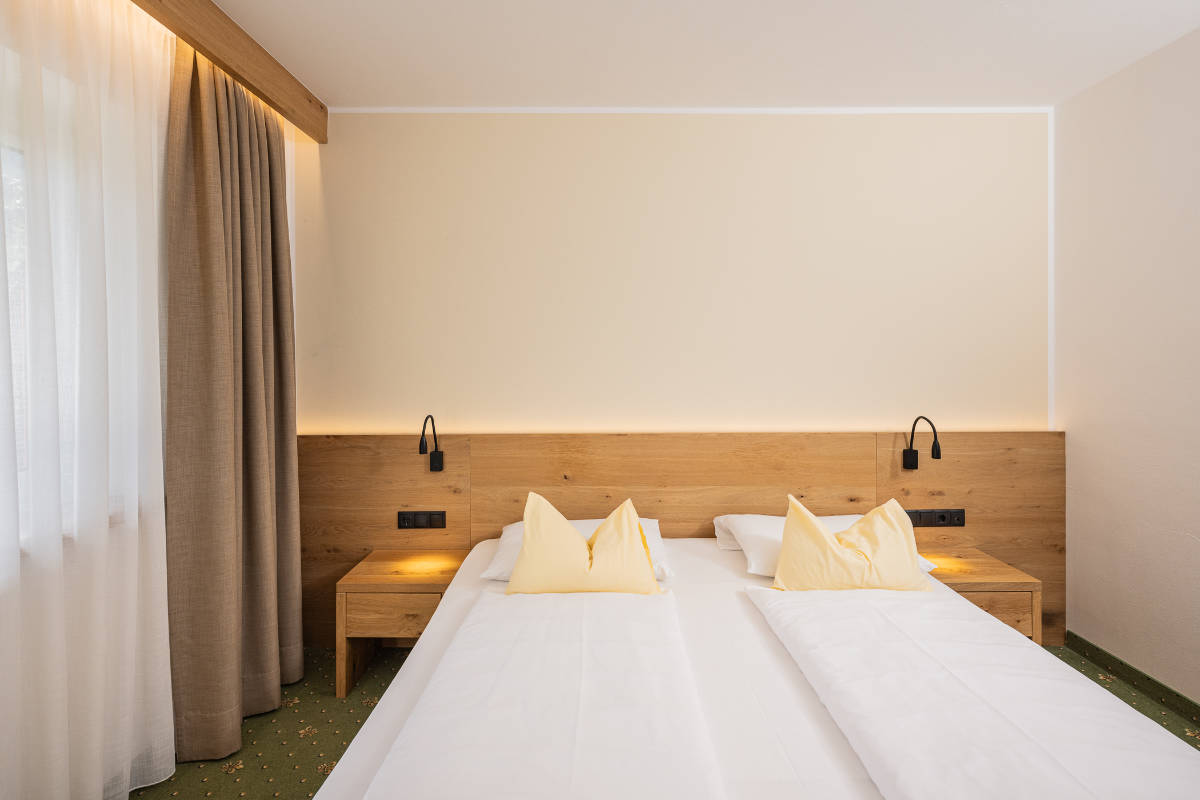 Schlofn wia di Murmilan – Schlafen wie die Murmeltiere! Die Zimmer in Montal im Pustertal spiegeln die Region wider: Sie sind ruhig, die natürlichen Materialien vermitteln Geborgenheit und laden zum Verweilen ein. Ein Platz zum Runterkommen, zum Fallenlassen und Abtauchen.